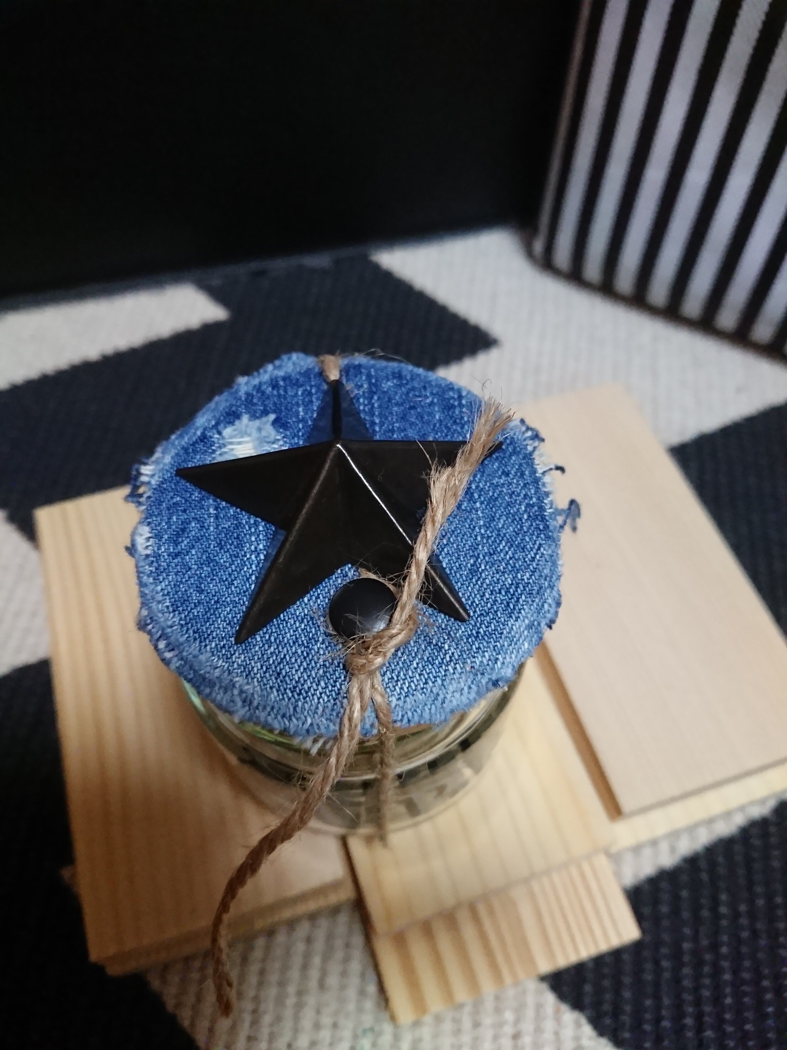 空きビンをリメイクしたキャンドルです。 フタ付きのハンドメイド感満載の、キャンドルです。手書きのポップなロゴがかわいいデザインになってます!