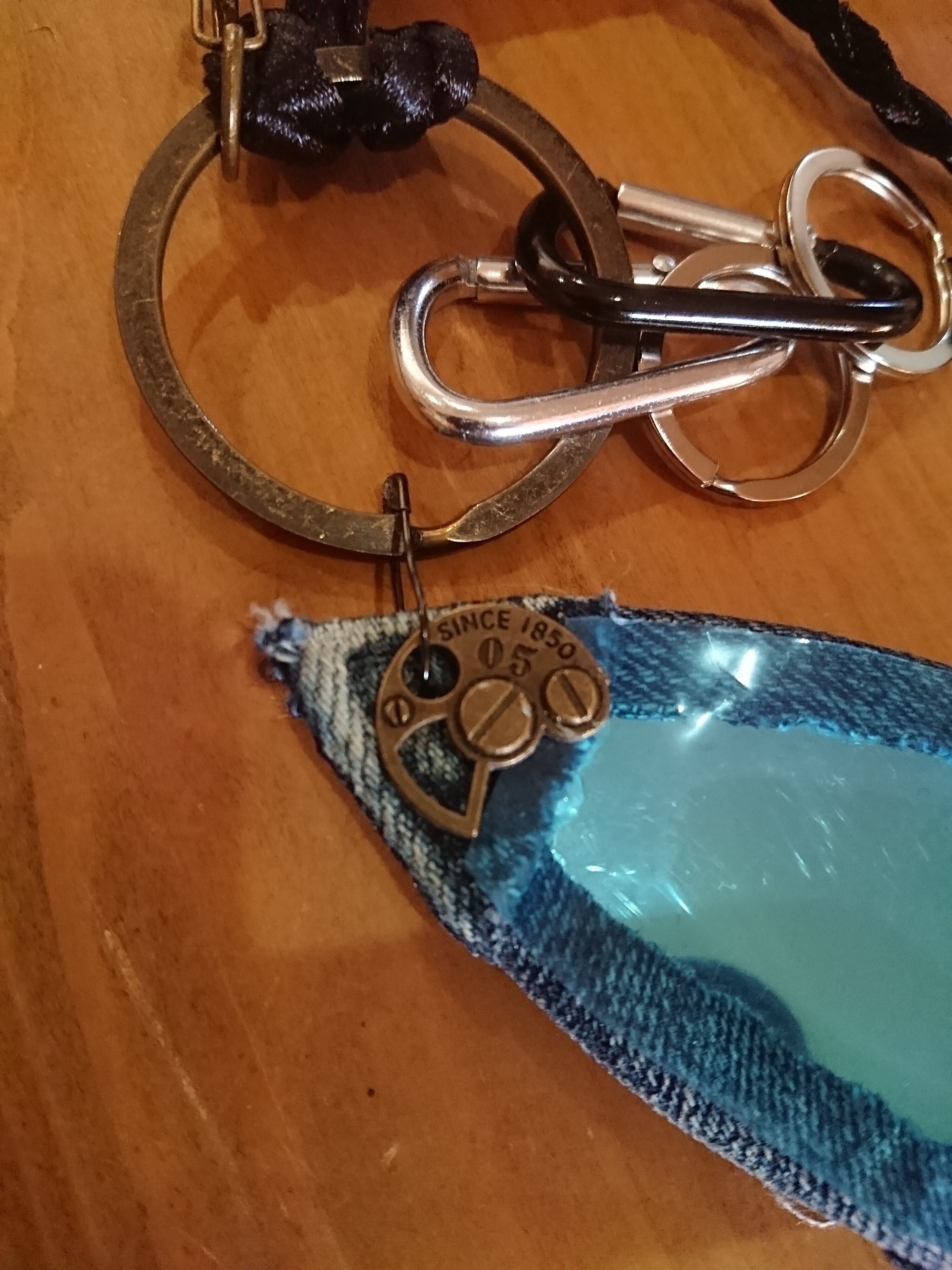 ヴィンテージかつジャンク風に仕上げ、デニムを主役にデザインしました。裏にはミラーも付いて機能的!(使用時にフィルムをはがしてください。)