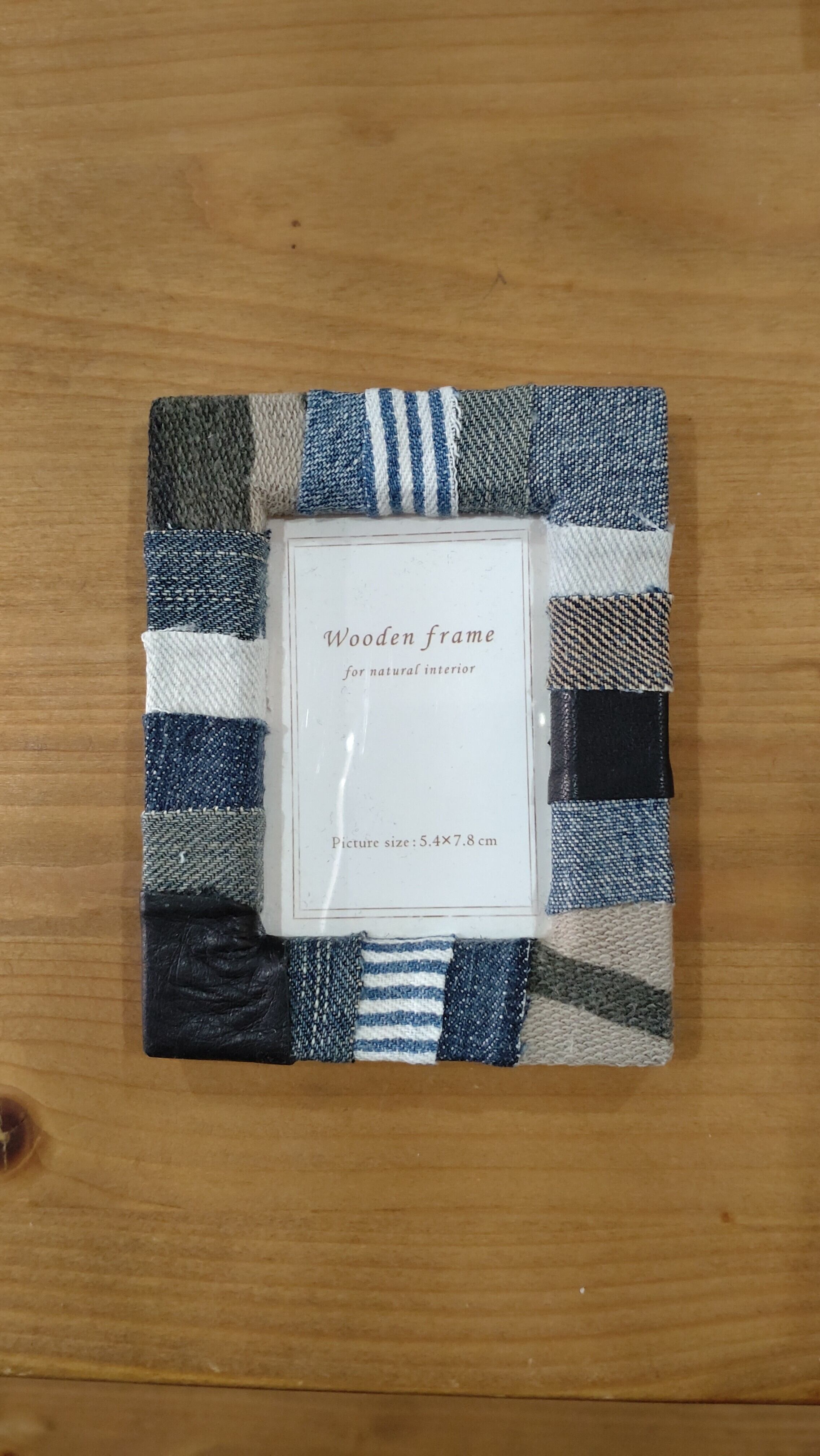 ミニフォトスタンドにデニムを施し、ビンテージ風に仕上げました。